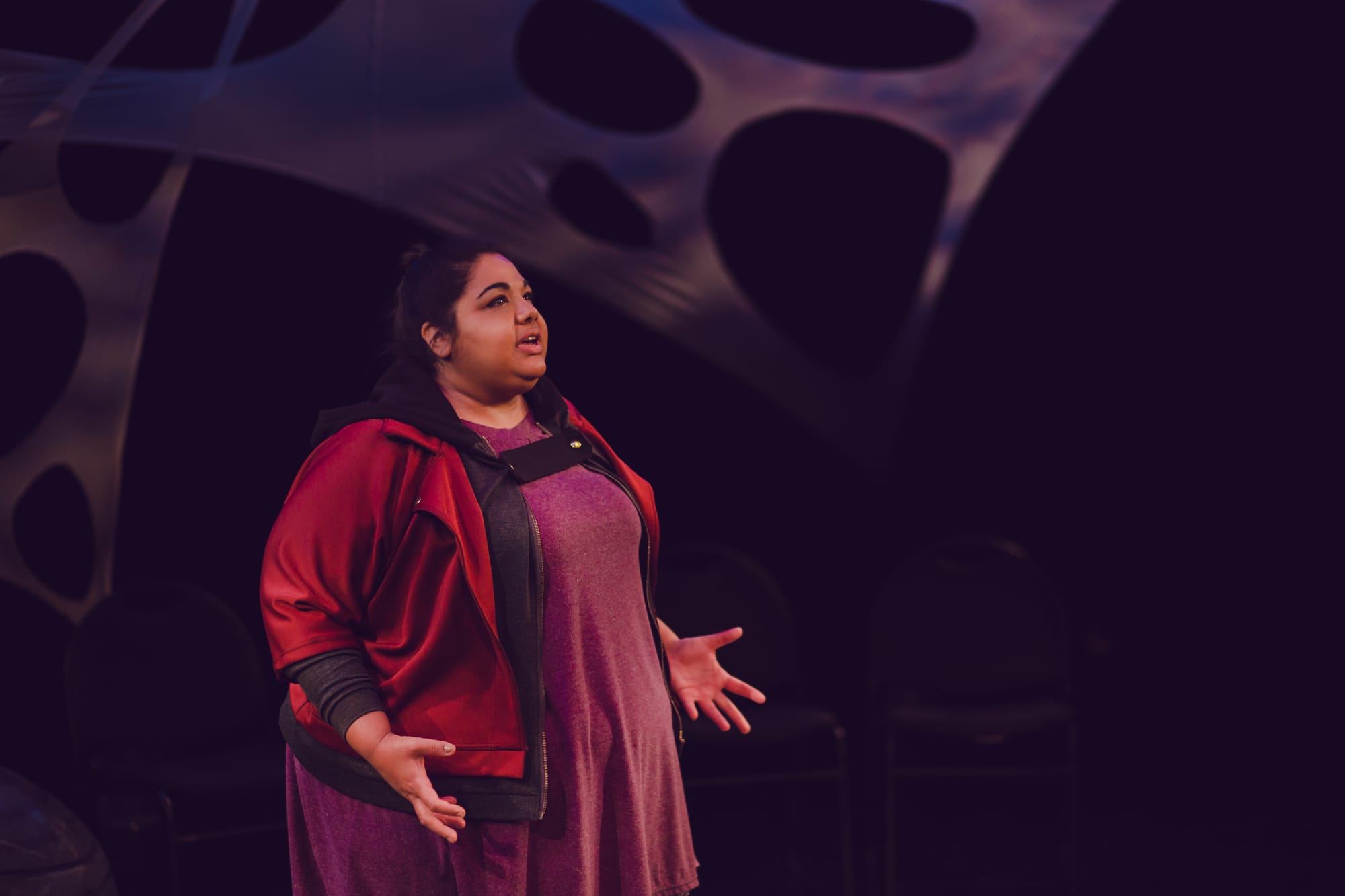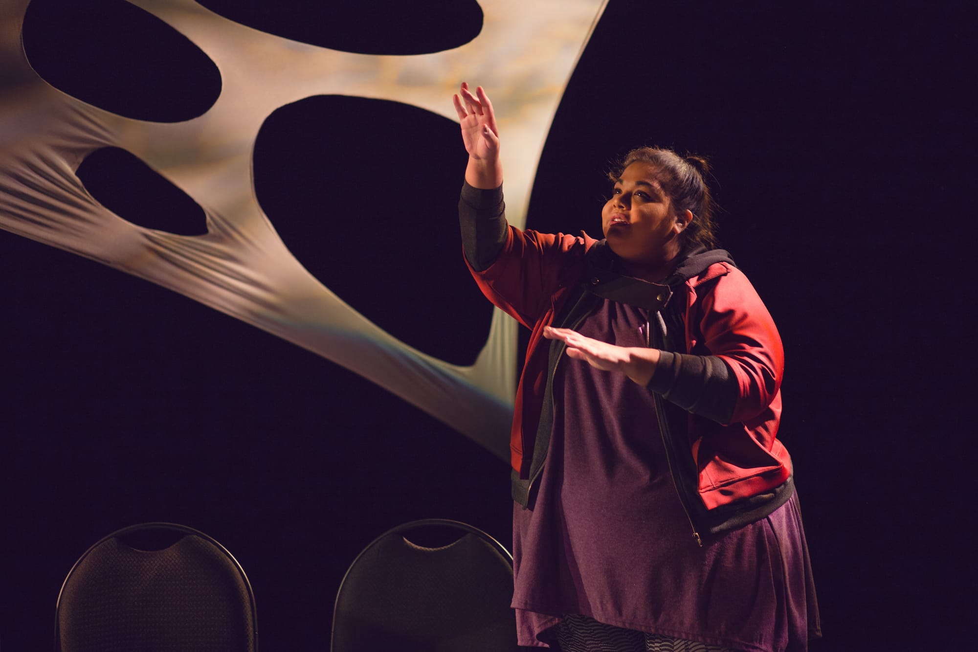 bug is a 60 minute solo show about women of an Indigenous family navigating addiction and intergenerational trauma. When their addictions manifest as manidoons (Ojibwe word for bug, insect or worm), the creature burrows beneath their skin, pushing them beyond the brink.